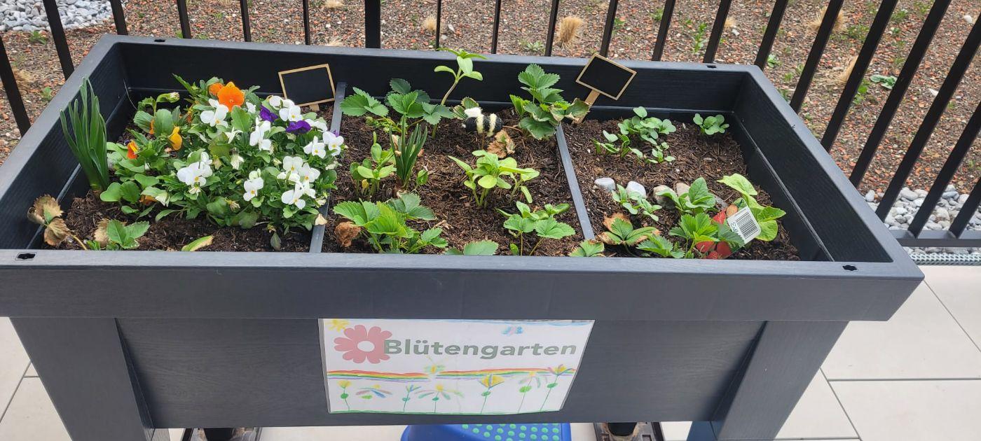 Mit Stolz und großer Freude dürfen wir euch hier unseren tollen "Terassengarten" präsentieren. In unserem neu umgebauten Kindergarten ging endlich der lang ersehnte Wunsch nach einem eigenen Hochbeet in Erfüllung. Gemeinsam mit unseren vielen fleißigen und naturbewussten Kindergartenhelferlein wurde gesät, gezüchtet und gemeinsam eingesetzt. Die Kinder konnten damit auch hautnah erleben, wie die unterschiedlichsten Blumen und Pflanzen aus Samen, Kernen und Zwiebeln entstehen und wachsen. Jeden Tag wird der Garten von einem Kind gegossen und gepflegt. Dies ist ebenso ein wertvoller Beitrag für naturnahes Erleben, vor allem für uns als "Klimabündniskindergarten!"